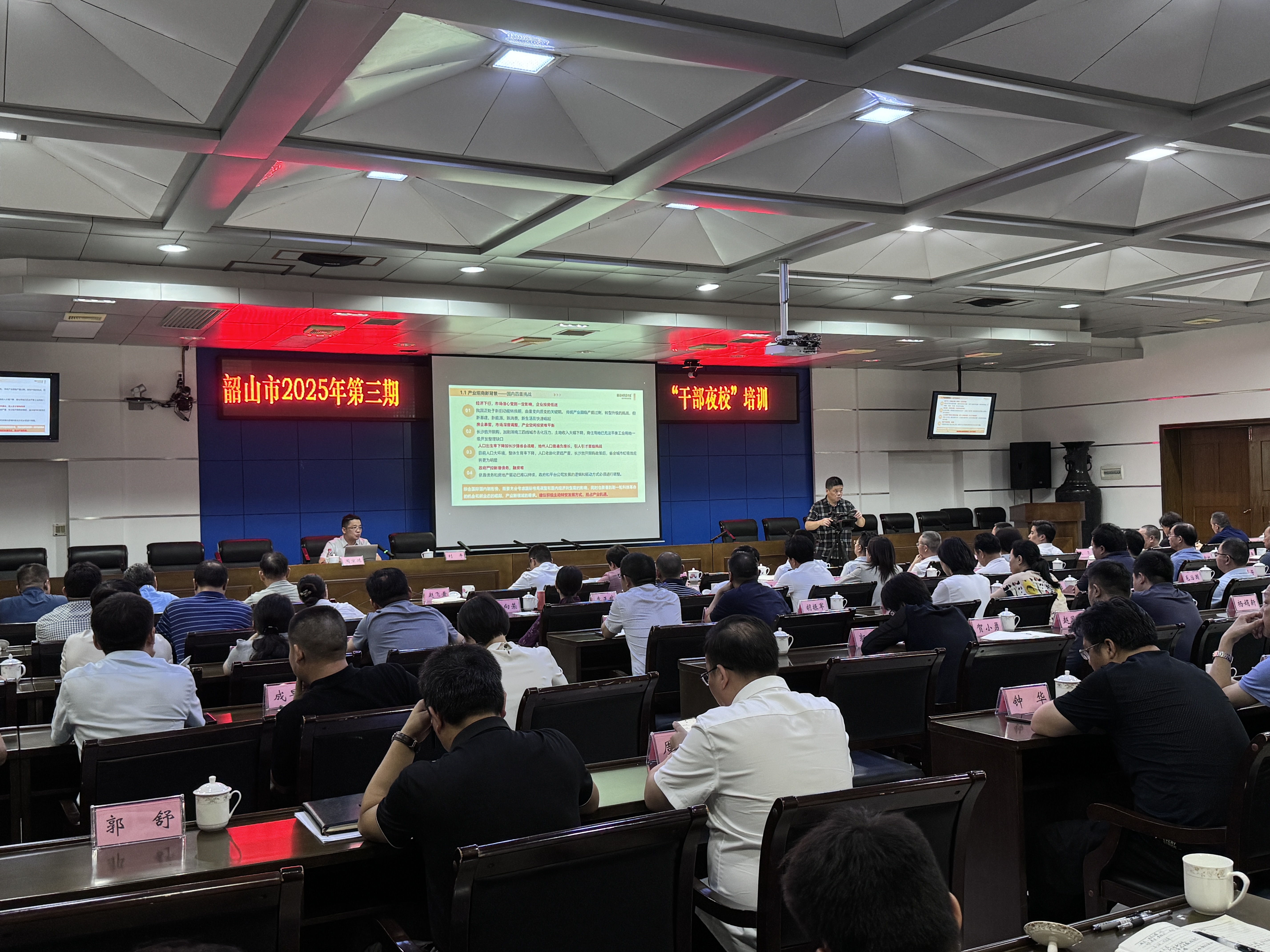 6月18日,我司总经理周京鸿受邀赴韶山市第三期“干部夜校”开展专题授课。本次培训由韶山市委组织部负责组织,韶山市副市长郑平主持,韶山市委书记曹宏伟、市长邓望军等韶山市机关干部参加培训活动。